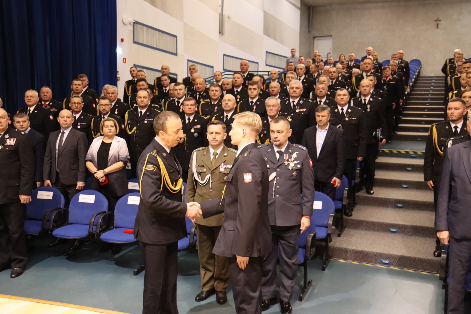 Uroczystość połączona została z wręczeniem odznaczeń i wyróżnień, miedzy innymi dla funkcjonariuszy PSP i druhów OSP z terenu powiatu świdnickiego.